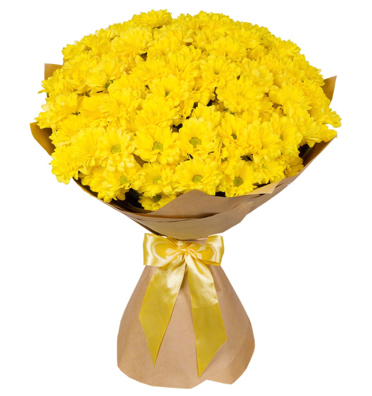 Букет состоит из 15 веток желтой хризантемы, крафт, желтая лента.
